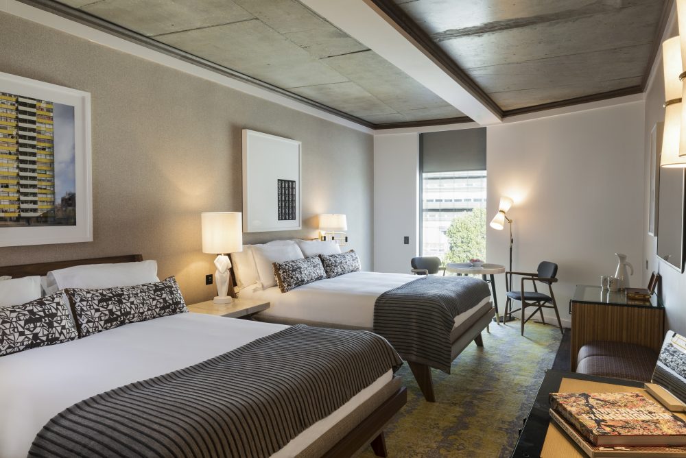 There are 161 bedrooms (and seven suites). We stayed in a ‘Generous Queen’ room which unlike most hotel twin rooms, had two Queen size beds in a spacious set out – this is a great set up for friends and families alike. The décor is a fusion of urban meets luxe; concreate ceilings, contemporary light fittings, and sleek walnut wood furniture, paired with powerful rainfall walk-in shower, 300 thread count Egyptian cotton sheets and fluffy robes and slippers. We love the super sized bottles of luxe Grown Alchemist toiletries.