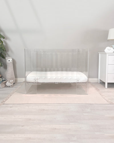 Providing the WOW factor, it offers the upmost versatility due to its transparent design, any décor can be a match made in heaven. With each cot being handmade to order, it is crafted from 100% recyclable acrylic, making it both stylish, and eco-friendly!
